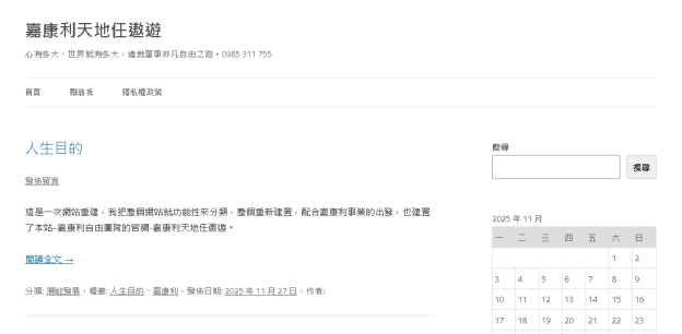 這是一次網站重建,我把整個網站就功能性來分類,整個重新建置,配合嘉康利事業的出發,也建置了本站–嘉康利自由團隊的官網-嘉康利天地任遨遊。